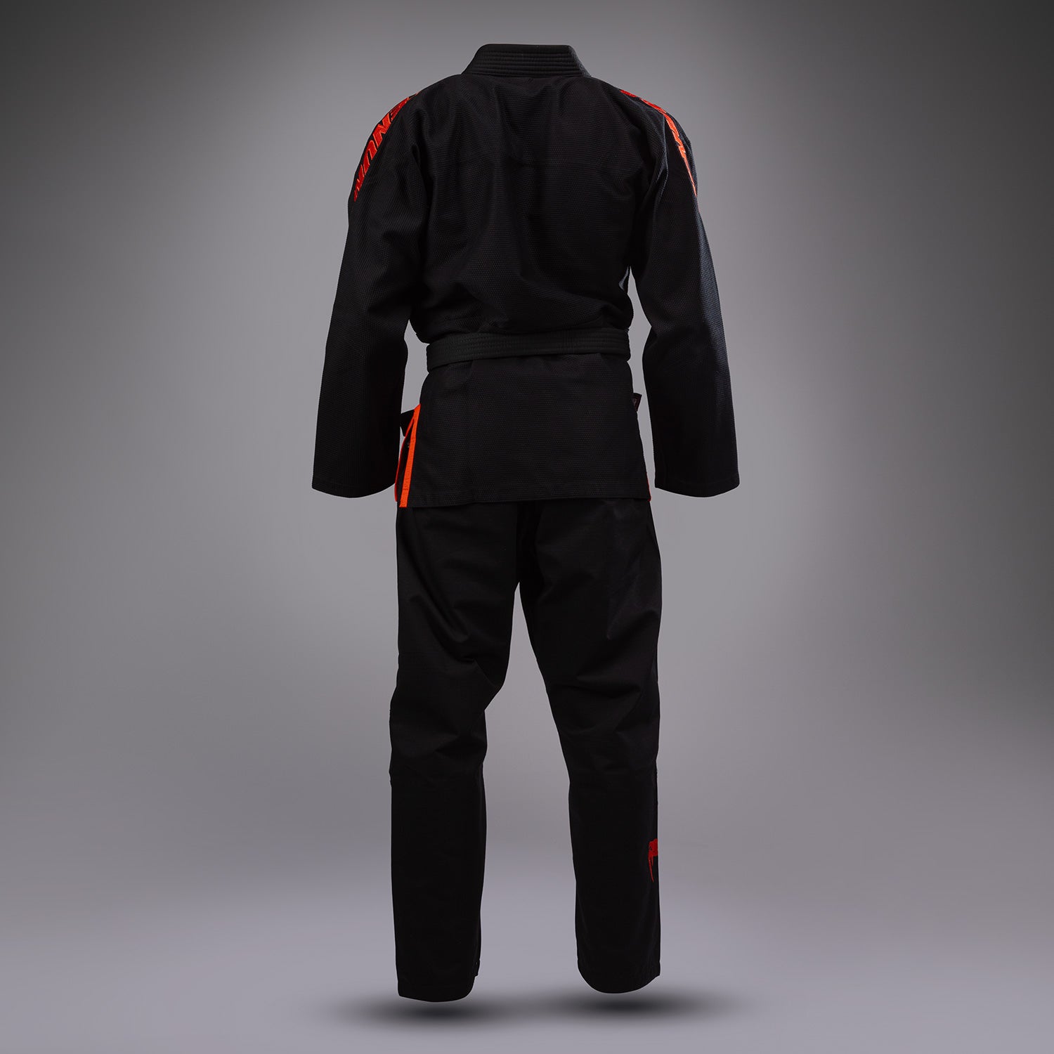 The striking design of the Venum Challenger XT Gi incorporates the Venum fangs, with branding in red at the shoulders, waist and ankle.