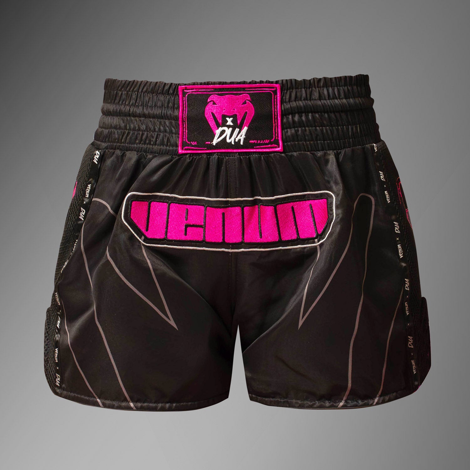 The Venum x Dua Muay Thai shorts have been made with a lightweight flexible fabric, leaving you free to move. Slits at the sides allow for greater range of motion in the ring. Reinforced stitching make these Thai boxing shorts durable and hardworking - even during intensive training and competition. A traditional elasticated offers a secure supportive fit around the waist, so you can focus on your performance. Make it bold but keep it playful, with the Venum x Dua collaboration - "Oooweee!"